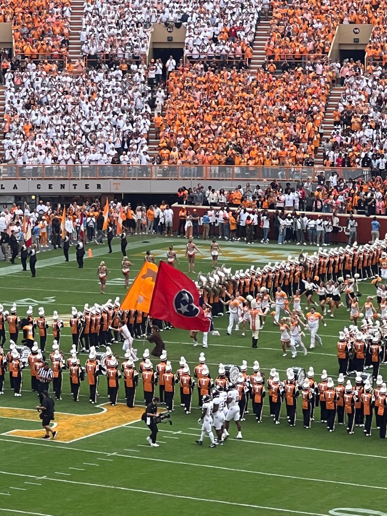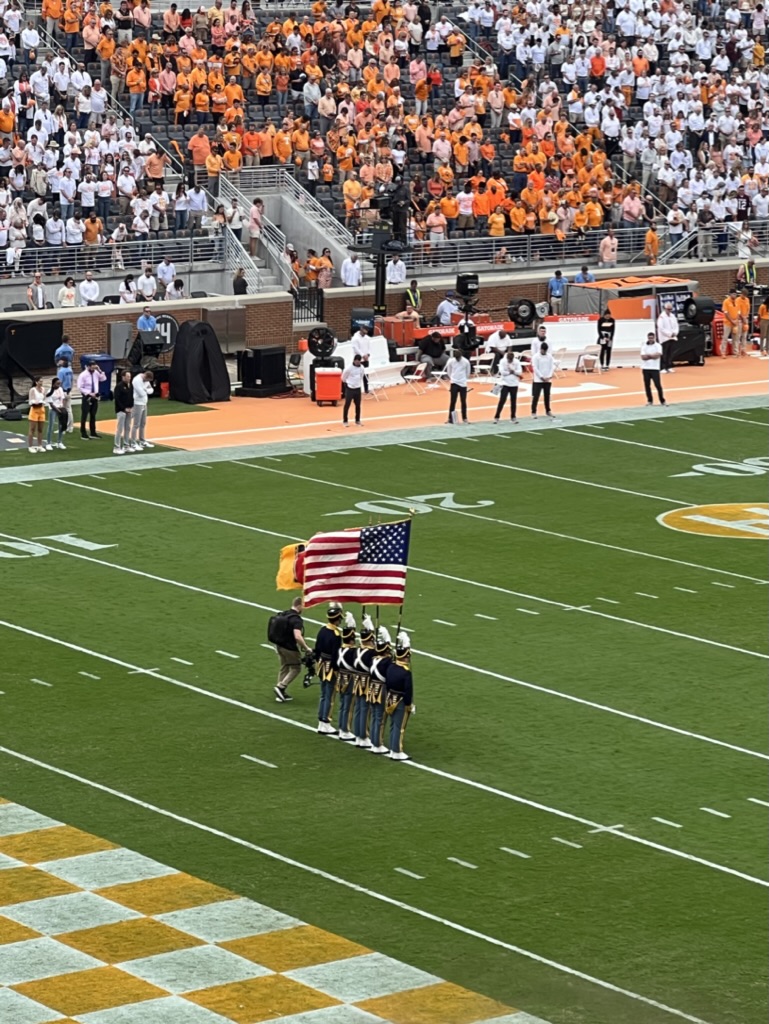 Everyone in the stadium prepares for the singing of the National Anthem on Oct. 14, 2023. (Shelby Wilson/UTK Student Journalist)