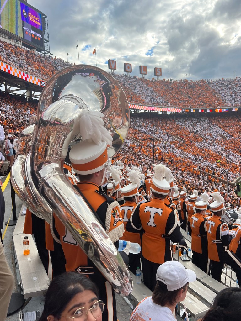 The band gets ready to play “Rocky Top” after a Tennessee touchdown in Neyland on Oct. 14, 2023. (Shelby Wilson/UTK Student Journalist)